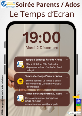 Conférence à suivre sur le thème : Le temps d'écrans Pôle culturel de Meyrannes